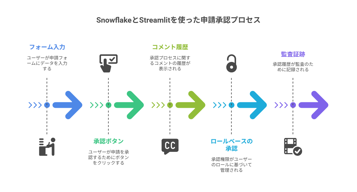 SnowflakeとStreamlitを使って、申請・承認・コメントを画面で完結できるアプリを作成できます。