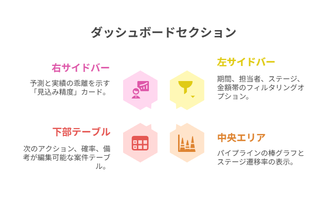 過去実績との乖離を自動計算して、過大評価の案件にタグ付けすれば、会議での注力先が明確になります。