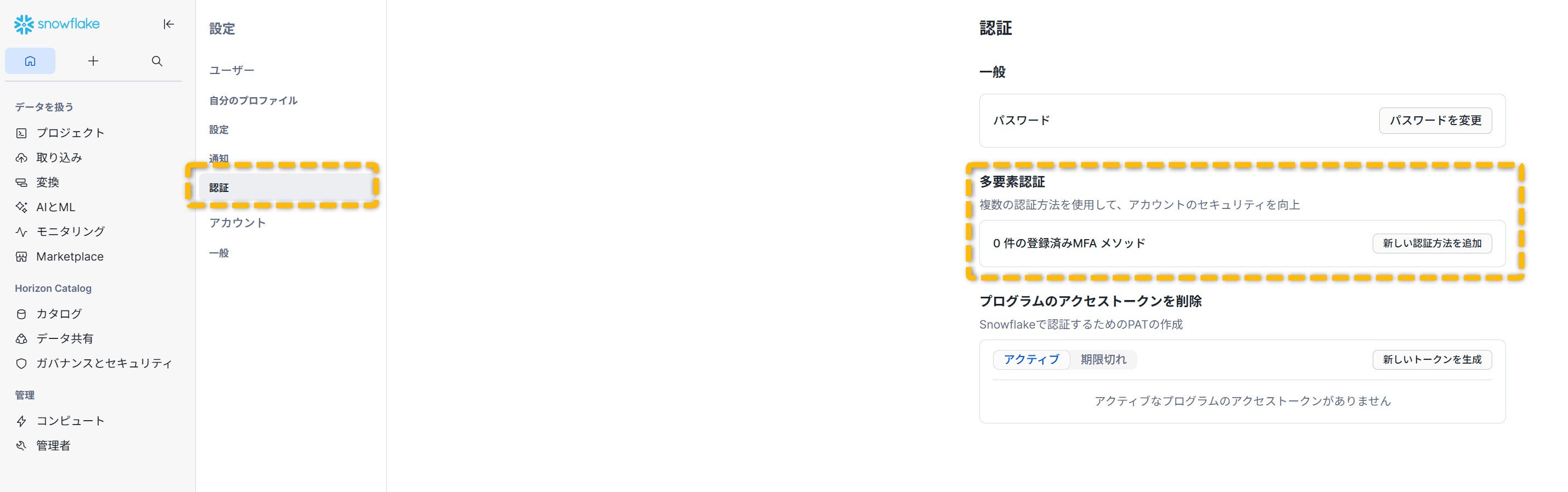 IdP側でMFAを強制し、Snowflake側は認証ポリシー(Authentication Policy)で許可する方式を制御する設計にすると、統制の一本化と利便性を両立できます。