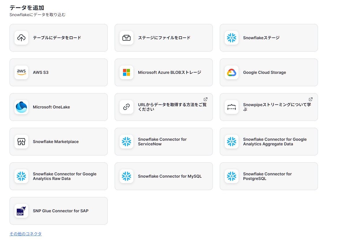 「Snowflakeがクラウドストレージからまとめてデータを取り込める」ということを目的として、AWS S3上に置いたCSVファイルを外部ステージとして登録して、COPYコマンドを使って、ステージ上のファイルをSnowflakeテーブルにロードする、ということも可能でしょう。