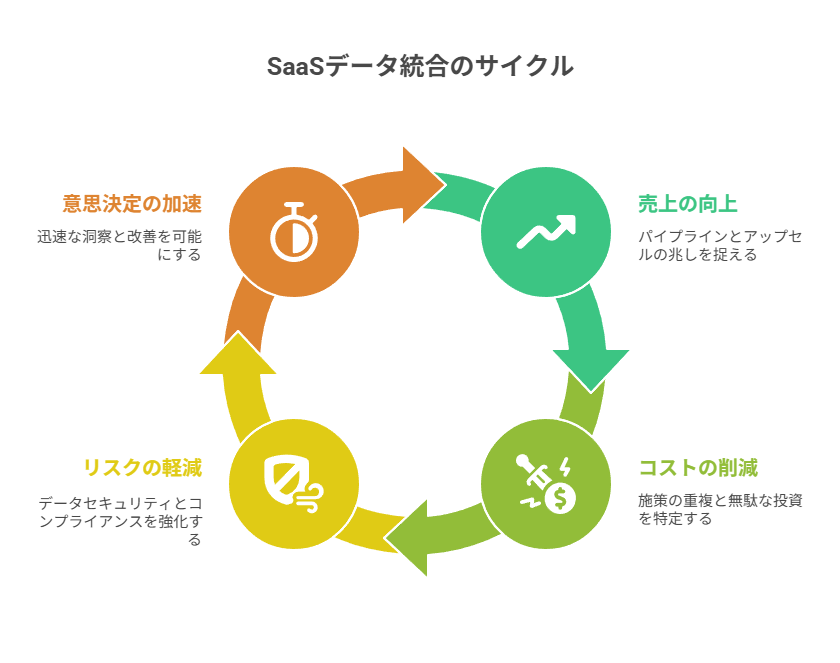 SaaSデータがつながると、売上面ではパイプラインやアップセルの兆しを早く捉えられます。
